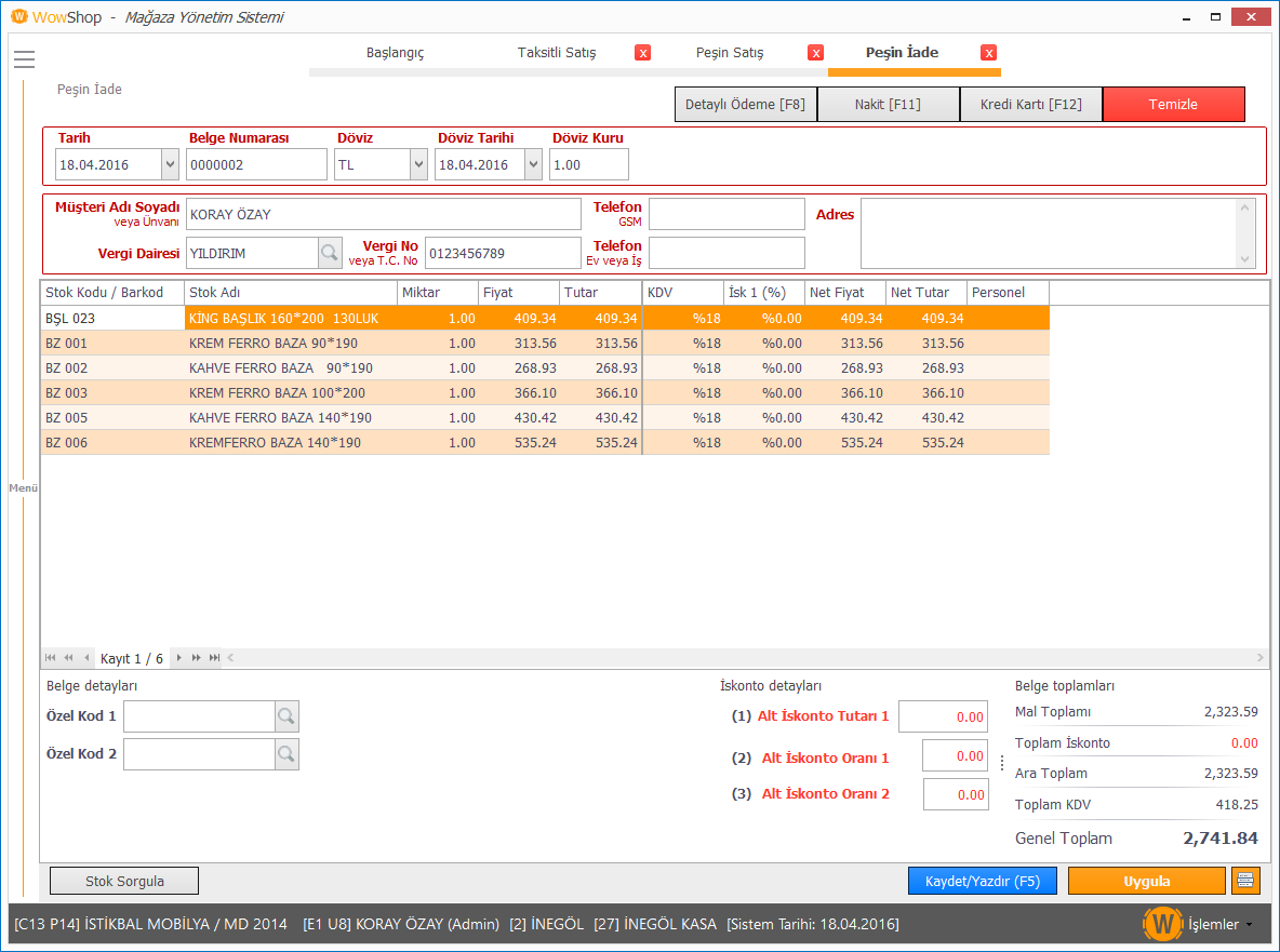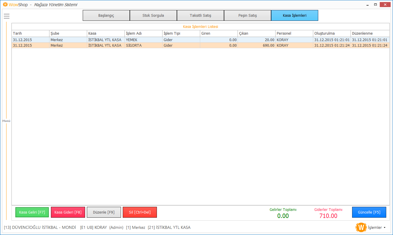 Günlük mağaza içi gelir ve giderlerinizi işleyebileceğiniz gelir/gider takip modülü